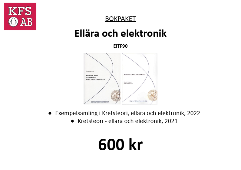 Kurslitteratur Ekosystemteknik Bokpaket EITF90 Ellära och elektronik Lägg till en bevakning så meddelar vi dig så snart varan är i lager igen. Produkten är nu bevakad Vi meddelar dig så snart varan är i lager igen. E-postadress Lägg till bevakning Dina personuppgifter behandlas i enlighet med vår integritetspolicy. Bokpaket EITF90 Ellära och elektronik Bokpaket EITF90 Ellära och elektronik Böcker: Kretsteori, ellära och elektronik Kretsteori, ellära och elektronik - Exempelsamling